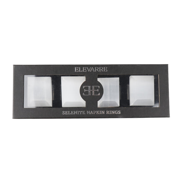 S/4 10" SENISE SELENITE/CRYSTAL NAPKIN RINGS, WHT