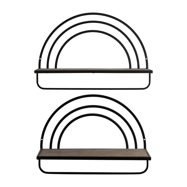 SET/2 WOOD/METAL RAINBOW STYLE SHEVES, BROWN/BLACK