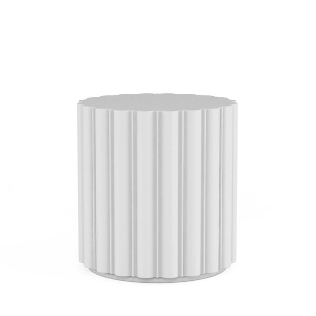 A scaled-down version of this collection?s cocktail table, this fluted end table evokes the classic style of antique columns, finely crafted in a modern cast resin that complements today?s aesthetic.