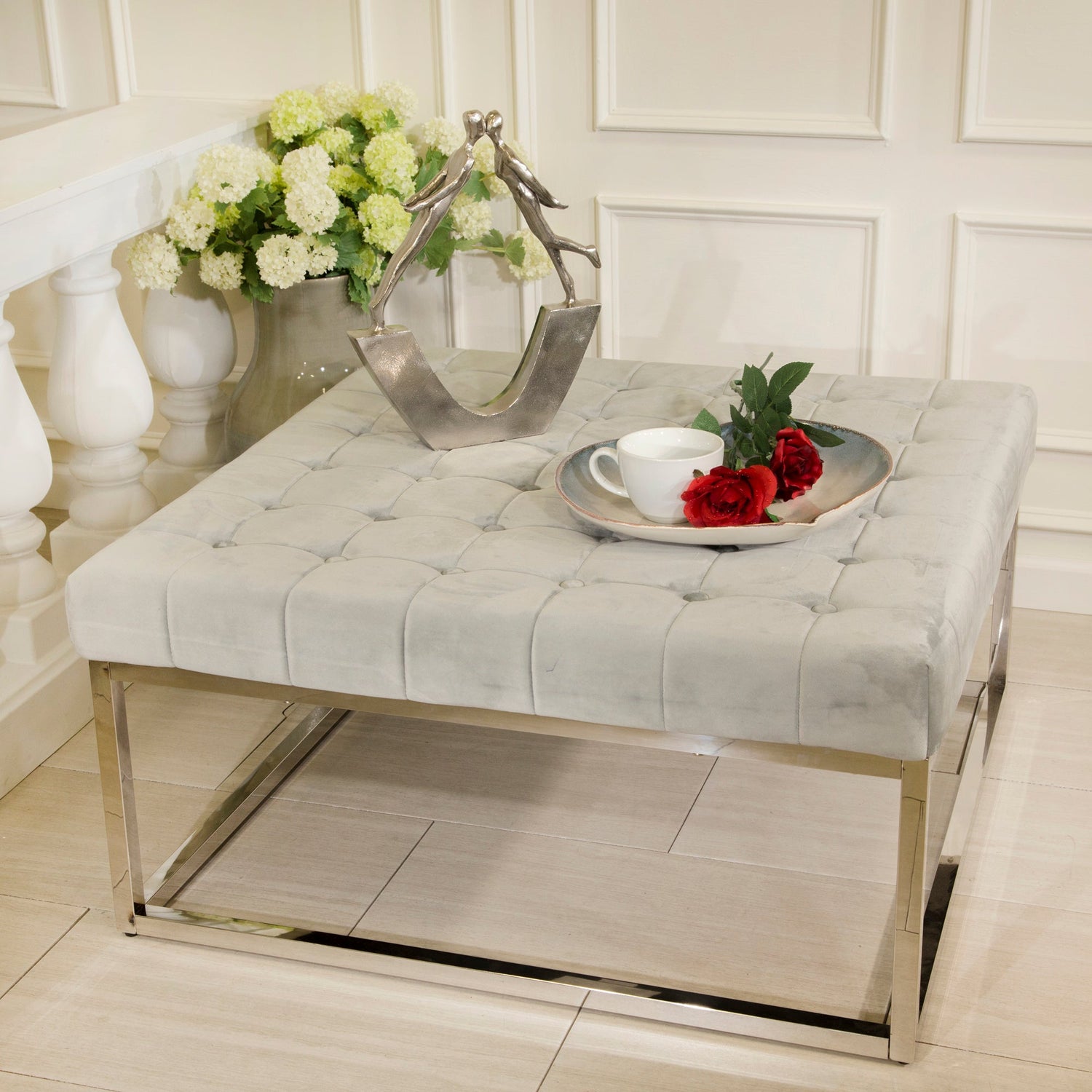 STAINLESS STEEL PADDED ACCENT TABLE, SILVER/GRAY K is backordered and will ship as soon as it is back in stock.