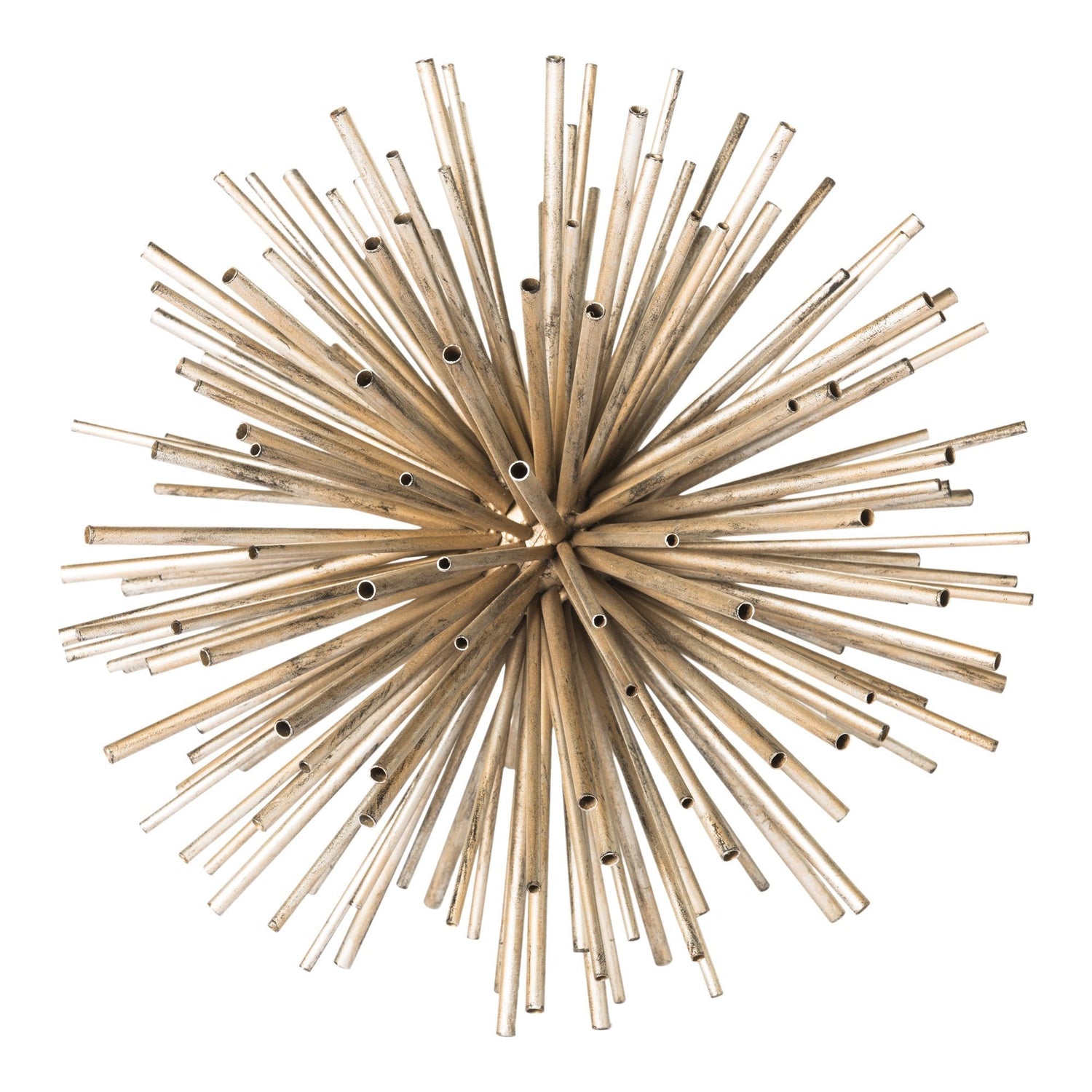 Add a three-dimensional aspect to your Décor with this contemporary, table-top art. Made of 100% iron and given a rich, gold finish, this piece resembles a miniature starburst—Stellar Home Décor