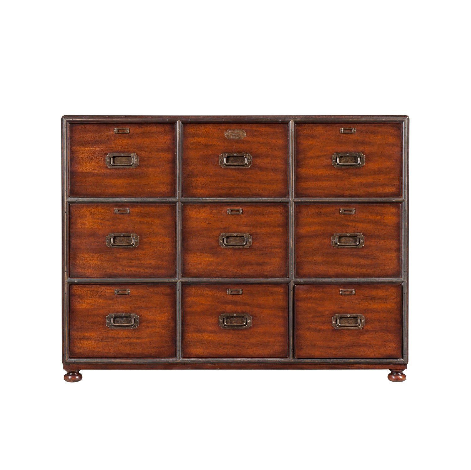 A Campaign and brass filing chest of drawers, with nine drawers, on bun feet. The original Victorian.
