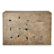 Squares of natural wire brushed teak are beautifully combined to create the Teak Tac Toe Console Table. Finished with multistep drift wood and white ceruse featuring a recessed black wood base giving the table a floating appearance. Each piece will vary. Katural fissures and variations in grain are expected and add to the intrinsic value and uniqueness of each table.