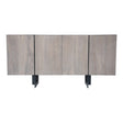 A contemporary, industrial sideboard with a pale-grey finish. Tons of storage to help keep your dining or living room neat and tidy. Crafted from solid wood and black, powder-coated iron for top-notch quality.