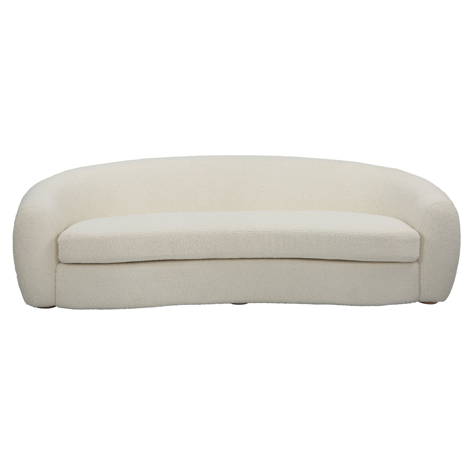 The Capra Sofa Draws Inspiration From Old Hollywood Glamour And The Art Deco Movement With A Contemporary Twist. The Curved Silhouette Maximizes Style And Comfort With Luxe Off White Faux Shearling. Rounded Bun Feet Are Finished In Natural Oak. Seat Height Is 19".