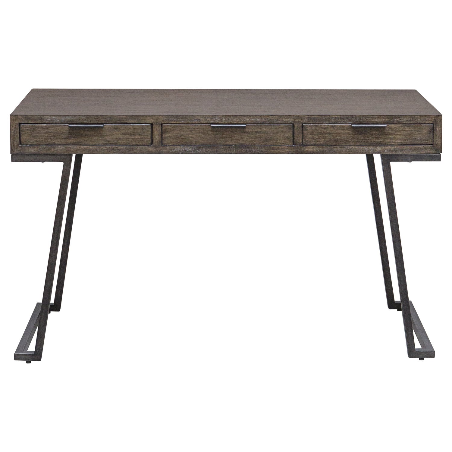 The Comrade Desk Provides A Perfect Spot For Ample Productivity. The Exterior Is Finished In A Mango Wood Veneer With Light Gray Glazing And Natural Wood Undertones, Supported By A Metal Base In Aged Steel. Features Three Drawers With Coordinating Metal Tab Drawer Pulls.