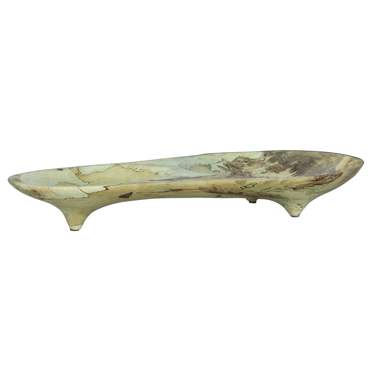 Carved from a single piece of tamarind wood with a soft organic shape, the two-bowl statement piece makes a great centerpiece. Since wood is a natural product, grain and soft green color will vary slightly.