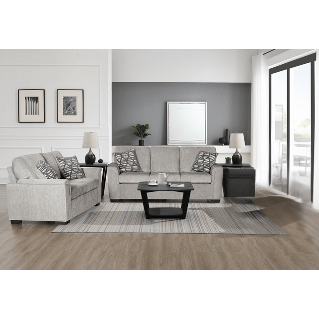 Upgrade your living room with the Verona Grey Living Room Set. This set includes a stylish sofa and loveseat that will enhance the look of any space. With its sleek design and comfortable seating, you can create a welcoming and modern atmosphere for your family and guests. Elevate your living space with this elegant set.