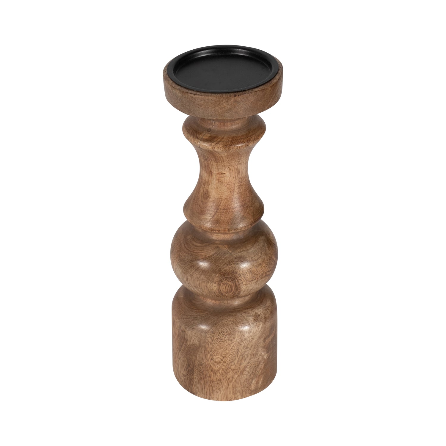 WOOD, 12" TRADITIONAL PILLAR CANDLEHOLDER, NATURAL