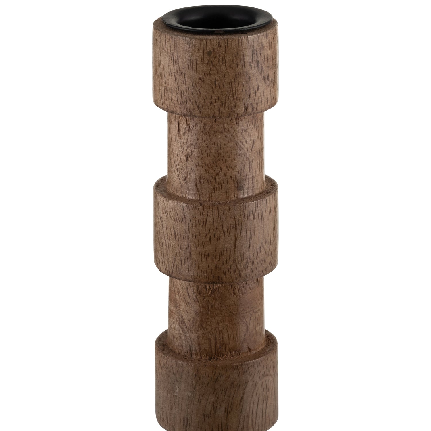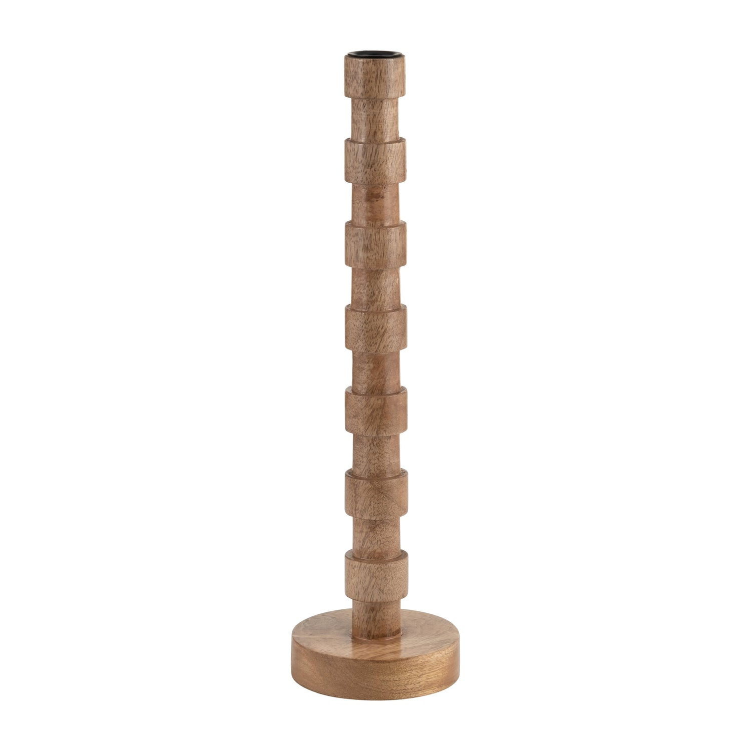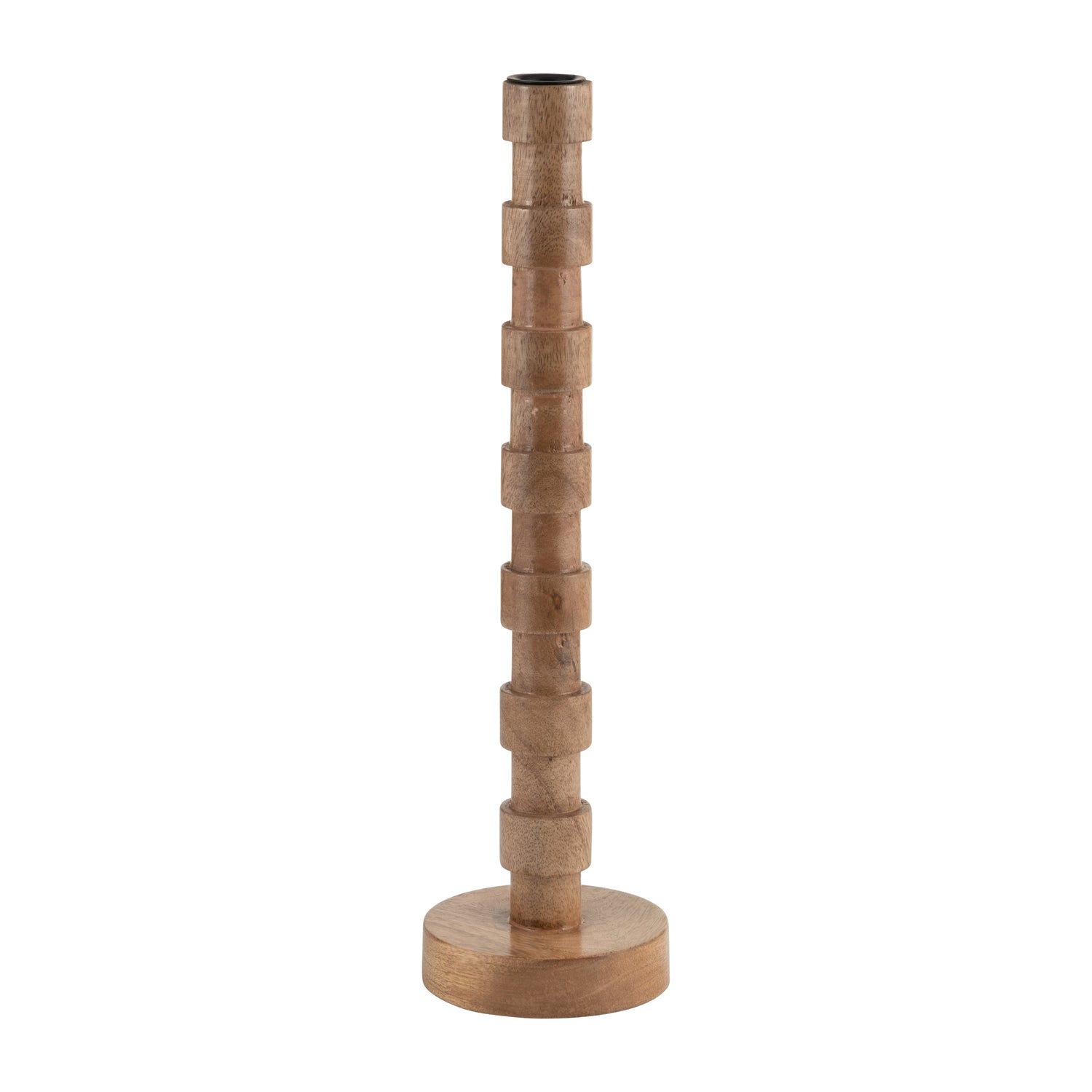 WOOD, 15"H TEXTURED TAPER CANDLE HOLDER, BROWN
